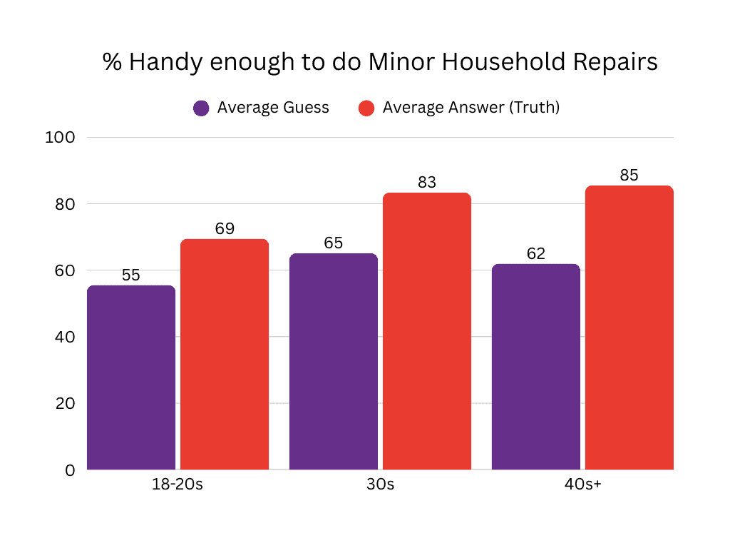 We had a whopping 79% of all users report that they are handy enough to do at least minor repairs. That’s pretty impressive. No, like that’s really cool that you can figure that out :) Where did you learn to do that? Wowww, so you’re like, really capable :)) Could you mount something for me? I meant the TV! Unless… :)))