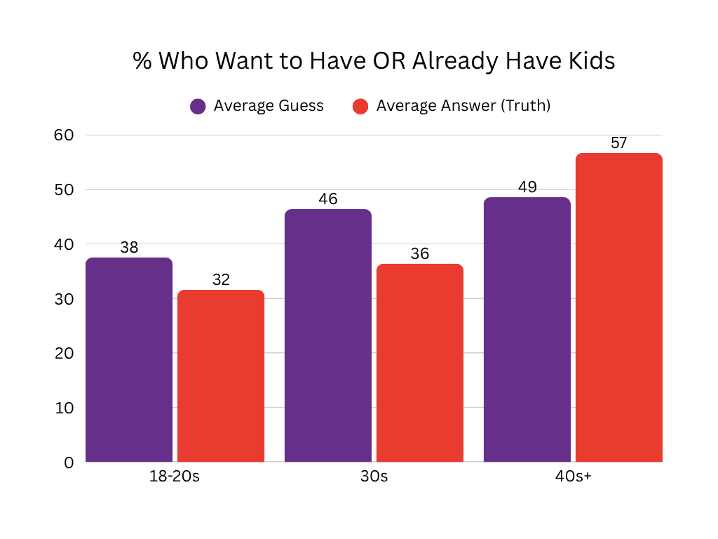 We also asked users last week how many people wanted kids or already had kids! The decision for/not having kids is very personal and we don’t want to make large assumptions, but we did have an interesting pattern in the results that we’ll show.